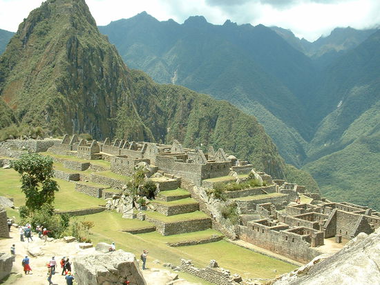 Unser naechster Trip war quasi obligatorisch - keiner kommt nach Cusco und faehrt nicht zum Machu Picchu. Cusco ist auch erst seit der Entdeckung der Ruine (das war uebrigens erst 1911) beruehmt geworden, vorher war die Stadt nur schnoede Provinz. Man muss naemlich fast zwingend durch Cusco, um zu den Ruinen zu kommen und Perurail, die Bahngesellschaft von hier, hat eine Zugstrecke direkt von Cusco nach "Aguas Calientes" gebaut, dem Dorf direkt unterhalb der Ruinen. Seitdem ist Cusco der Haupanziehungspunkt fuer den internationalen Tourismus hier. Vor 2 Jahren wurde Machu Picchu in einer Internetabstimmung zu einem der "neuen 7 Weltwunder" gewaehlt.
