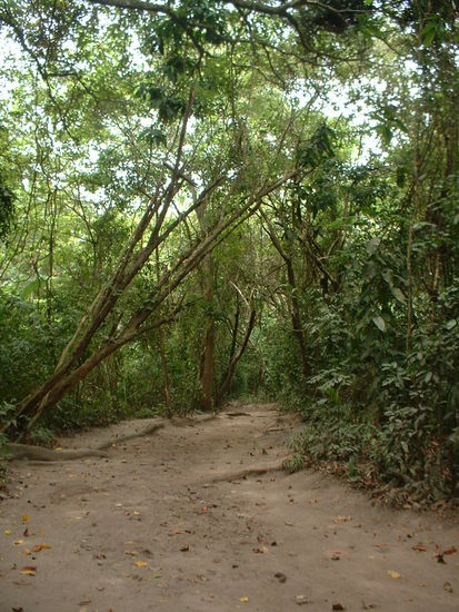 Am zweiten Tag haben wir eine Tour durch den Tairona Nationalpark, nicht weit weg von Santa Marta gebucht. Im Tairona-Park findet man auf einer Flaeche von 15.000 Hektar eine unglaubliche Regenwaldidylle zusammen mit schoenen Sandstraenden. Ausserdem leben hier noch die Indianer vom Tairona-Stamm in ihren Huettchen. Man bezahlt fuer den Park einmal den Eintritt und kann dort quasi so lange bleiben wie man lustig ist. John erzaehlte mir, dass manche Leute hier einen ganzen Monat bleiben, um mal auszuspannen. Durch den Park kann man sich entweder zu Fuss fortbewegen oder man mietet sich ein Pferd. Die Pferde bekommen aber nicht allzu viel zu fressen und sehen daher teilweise ziemlich abgemagert aus. Fuer mich ein Grund mehr zu laufen.