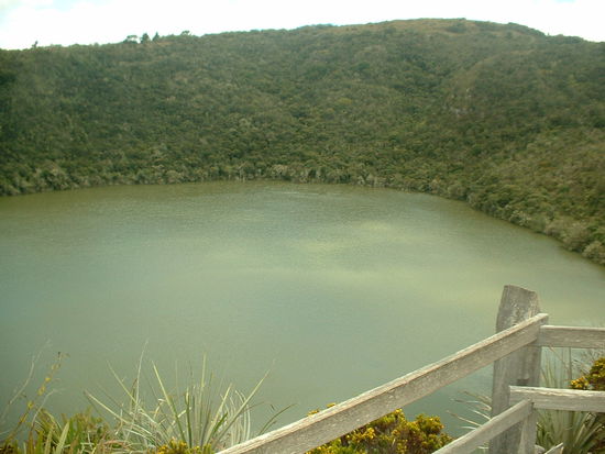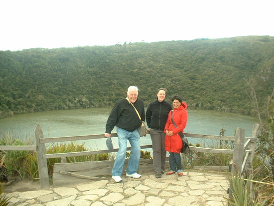 Die erste Station war Guatavita, eine Lagune, ca. 1 1/2 Stunden von Bogota. Diese Lagune war ein wichtiger Zeremonienplatz fuer das Muisca-Volk, das von ca. 600 v.Chr. bis 1600 n.Chr. dort lebte. Hier stammt auch die Legende von der Goldstadt Eldorado her. Die Muisca haben naemlich, da Gold fuer sie nichts Wertvolleres war als andere ihrer Besitztuemer, in ihren Zeremonien ihrer Gottheit Goldopfer gebracht und diese in der Lagune versenkt. Viele Europaer, zuerst natuerlich die Spanier, haben daher versucht, die Goldschaetze in der Lagune zu bergen und sogar einen grossen Teil des Wassers dort abgelassen, indem sie einen V-foermigen Graben dort gegraben haben. Gefunden haben sie auch einiges, aber nicht, wie sie gedacht haben, eine ganze Stadt voller Gold.