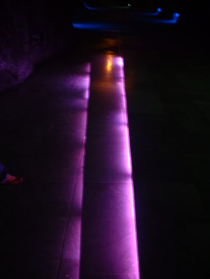 Die Kathedrale ist riesig und besteht aus mehreren Abschnitten, die alle bunt beleuchtet waren. Die bunten Lichter werden super durch das Salz reflektiert.