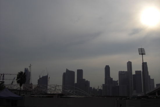 Nachdem ich mit den beiden Japanern kurz unterhalten hatte, wollte ich erstmal bisschen was von Singapore sehen. Also Flip Flops an, Kamera in die Hand und los geht's, ohne großen Plan. Zunächst vorbei am berühmten Raffles Hotel, dann vorbei an verschiedenen Malls mit coolen und interessanten Skulpturen und dann in eine Mall für die reichen und schönen. Das erkannte ich daran, das vor der Mall unter anderem zwei Ferraris standen. Nachdem ich die Mall hinter mir gelassen hatte, begab ich mich in die Richtung eines Riesenrades, wie mir später klar wurde eine ziemlich teure Attraktion in Singapur (denn 30$ für eine Fahrt, dass sind 15€ haben mich schon bisschen schockiert). Jedoch hatte es auch etwas Gutes, dass ich dahin gewandert bin, denn ich stand auf einmal auf der Formel1 Rennstrecke von Singapur und sogar in der Boxengasse und der Startaufstellung, denn die wurden grade erst abgesperrt Was für ein Glückskind ich doch bin. Ich bin ein bisschen auf der Strecke spazieren gegangen, dann wurde aus der Rennstrecke eine normale Straße und schon kam auch ein gelber Ferrari an mir vorbei geschossen.