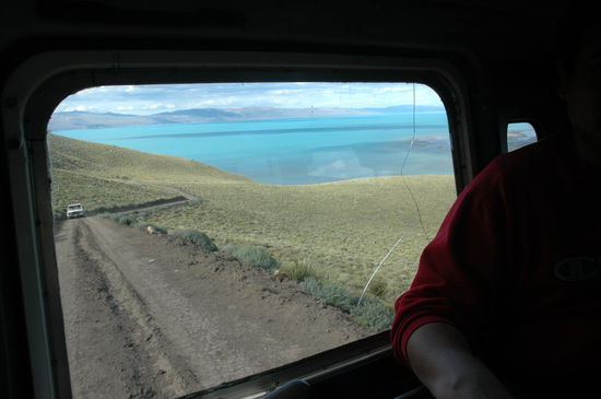 Als wir die Jeeptour buchten wusste ich nicht auf was ich mich da eingelassen habe.Wir fuhren zum Cerro Frais ein kleiner Berg,dann gings los wir waren zu sechst ich und Dani mussten hinten rein.Dort musste man sich schon gut festhalten vorallem bergab.Doch die fahrt war easy.Die Aussicht war genial man sah den Lago Agentino seine Farbe war richtig kitschig.doch man musste aufpassen das man nicht vom Berg geweht wurde,der Wind war sehr stark.Zum Schluss gab es auf einer Estancia noch ein Asado es war richtig gemühtlich.Als wir dan wieder zum Bus zurück gingen wollte mich mein Schatz umarmen doch leider hat der mir seinen Ellenbogen voll an dir Nase gehauen,autsch das hat schön weh getan
