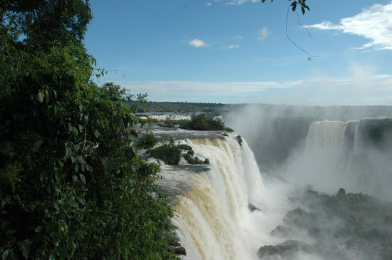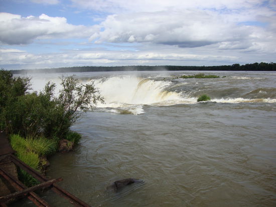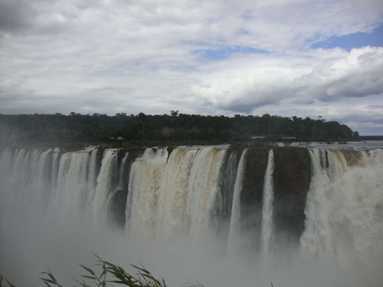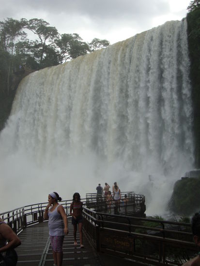 Am Silvestertag machten wir uns auf den Weg zu den Wasserfällen auf der brasilianischen Seite da wir recht lang schliefen entschieden wir uns mit dem Taxi über die Grenze zu fahren den das war gut organisiert.Man kann das ganze auch billiger mit dem Bus machen.Bis zur brasilianischen Grenze waren es 5min.Als erstes gings in den Vogelpark und danach mit einem Spezialbus zum Wasserfall.Auf dem Weg dort hin überviel uns ein typischer Platzregen.Zu Fuss gings der Menschenmasse nach bis zum Garganta del Diablo.Riesige Wassermengen,Lärm und nassgespritzt,wir wurden erfrischt oder besser gesagt durch und durch nass.Nach einer weihle machten wir uns auf den Weg zurück bis zum Parkeingang,wo wir hofften dasder Taxifahrer dort auf uns wartet.Natürlich war er da den wir hatten ihn ja noch nicht bezahlt.