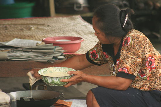 Bei der Rückfahrt dann unser persönliches Highlight. Wir hielten an, um eine Kaffeemühle zu besuchen und wurden sogleich von einer Familie in ihre Küche eingeladen. Die Balinesen in den ländlichen Gebieten leben noch sehr traditionell und arm. In der kleinen, russgeschwärzten Küche röstete uns die Frau Erdnüsse über dem Feuer und auch Bananen wurden uns gereicht. Die Kinder haben von Augustinus Schokolade gekriegt, welche er schon vorsorglich gekauft hatte. Danach gabs einen wirklich leckeren Kaffee (und wenn ich als Nicht-Kaffee-Trinkerin das sage ) Die Kinder wollten unbedingt mit Haus und Hof auf die Fotos, so dass aber auch noch die hinterste und letzte Katze angeschleppt wurde. Wir fandens einfach nur schön und waren bezaubert von der Freundlichkeit der Einheimischen.