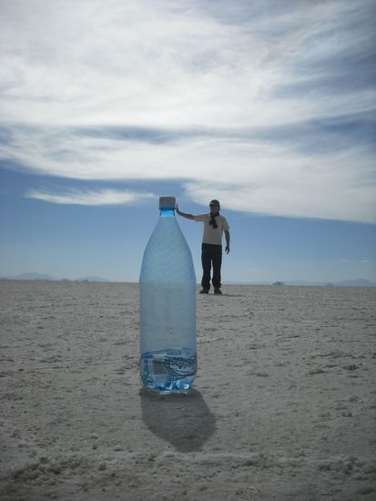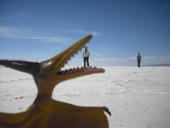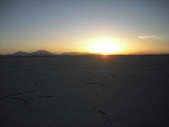 Der "Salar de Uyuni" ist mit 12000 qKm der groesste Salzsee der Welt. Er sieht aus wie ein steinhart gefrorener See und man kann nette Bilder machen, weil Orientierungspunkte fehlen. Insgesamt sehr beeinduckend.