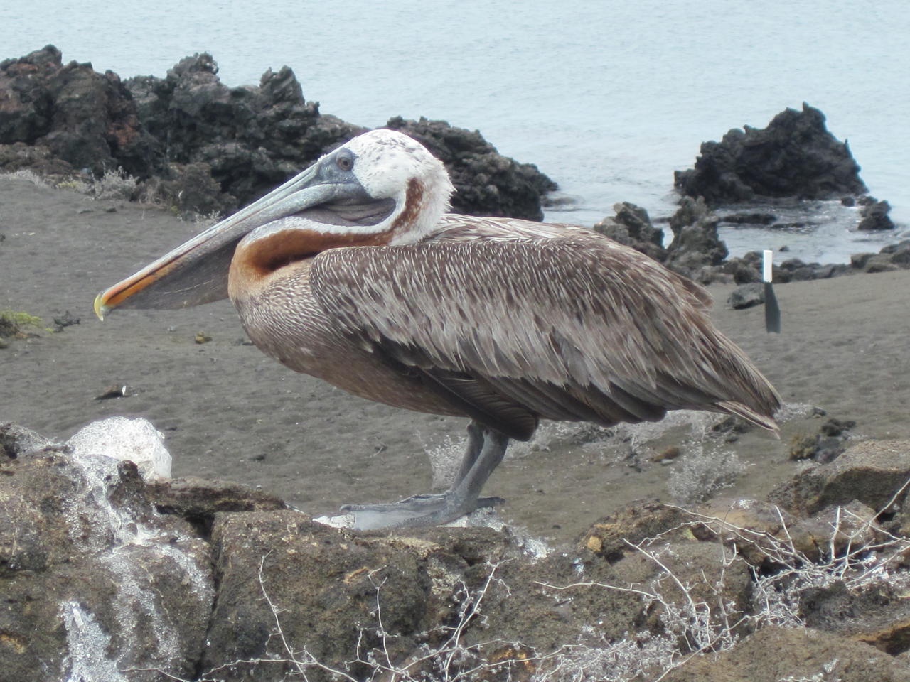 Wichtig bei allen Galapagosinseln ist, dass man sie nie ohne einen geschulten Gide besuchen darf, damit die Insel erhalten bleiben und von den Touristen nicht zerstört werden. Weil wir so eine große Gruppe sind (20 Personen), brauchen wir sogar zwei Reiseführer: Sie zeigen uns die Insel und erklären uns die Natur, der Ausblick ist umwerfend: