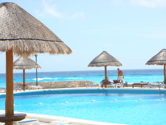 Am Flughafen von Cancun mussten wir eine menge von Papieren ausfuellen (Schweinegrippe!!) Bis sie uns endlich aus dem Flughafen liesen. In einem riesen Sammeltaxi (Nur Claudia und Nathalie drin) wurden wir zu unserem Hotel gefahren. Wir hatten keine Ahnung, was uns erwarten wird, weil wir von der Schweiz aus unsere Unterkunft gebucht haben. Wir schauten ziemlich bloede, als sie uns vor einem luxurioesen 5 Sterne Hotel aussteigen liessen. Schaut selber: