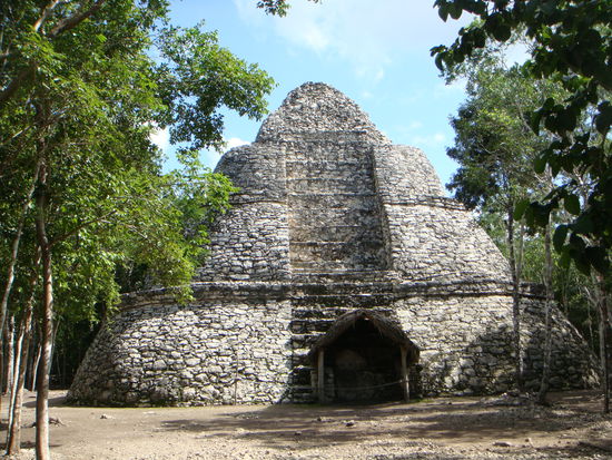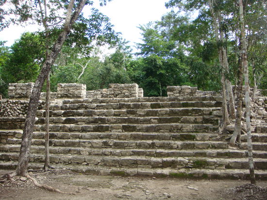 Weiter fuhren wir nach Coba. Dort besichtigten wir im dichten Jungel eine der groessten Maya- Staetten Mexicos. Da es ein sehr grosses Gebiet