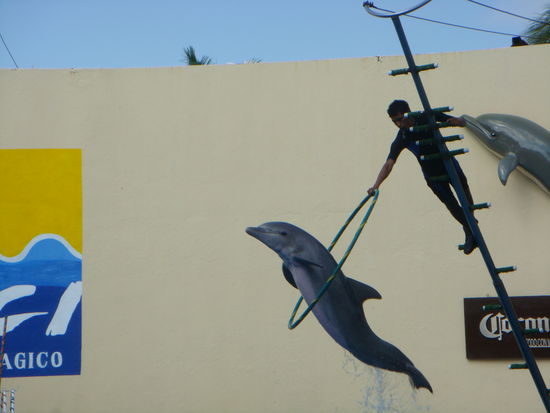 Die lustige und schoene Delphinen- Show entschaedigte jedoch alles wieder.