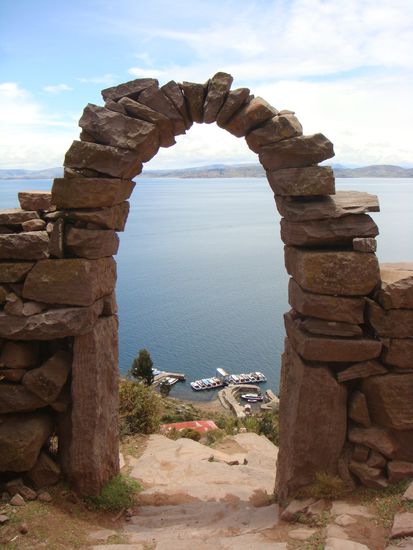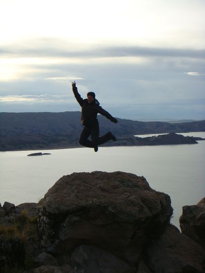 Doch dies lohnte sich allemal. Oben angekommen durften wir einen wunderschoenen Ausblick auf den Titicacasee geniessen. Der Titicacasee liegt auf einer hoehe von 3.810 m und hat eine Fläche von 9.064 km². Es ist der Flaechenmaessig groesste See, der auf einer solchen hoehe liegt.
