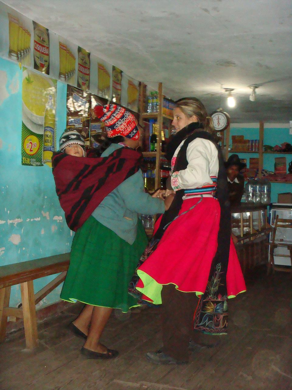 In diesen Trachten wurden wir zu einer Party eingeladen. Eine Band spielte coole Musik und wir durften (oder MUSSTEN) mit den Mamas dazu tanzen . Einfach herrlich und ein ganz tolles Erlebnis!