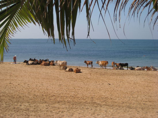 wir wussten bis gestern morgen nicht wohin. om beach, palolem,..? diese entscheidungen bringen einem manchmal fast um 5min vor busabfahrt haben wir uns fuer palolem entschieden. richtig wie ich jetzt finde. haben gestern gleich ein paar coole leute getroffen und abends ein feuer am strand gemacht. palolem ist vorallem viel schoener als der norden goas. das wasser ist klarer, der sand weisser und alles ist voller palmen. haben jetzt ein suesses bamboo huettchen am strand und geniessen das nichtstun. hier gibts nicht so viele parties, aber dafuer hat es coole leute und einen guten vibe. gestern war zwar so eine silence party. ab 10 uhr wird die musik abgestellt, aber dann kriegt man kopfhoerer und tanzt so im sand. gut nicht!
