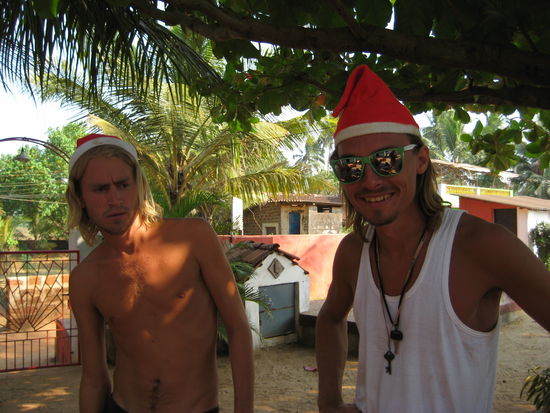 leider gottes sind wir von arambol weg und nach anjuna. anjuna ist zwar ganz nett,aber ausser einem okay strand, tote restaurants und psy trance partys gabs nicht sonderlich viel. da wir aber mit "unserer" gruppe unterwegs waren, wars natuerlich trotzdem lustig. am 24. sind wir alle mit einem kater aufgestanden und keiner hatte lust etwas zu organisieren. je spaeter es wurde, desto "nervoeser" wurden wir und irgendwie haben wir es in den supermarkt und zum fisch/fleisch markt geschafft. wir haben sogar noch unser strand bungalow dekoriert. alles sah wirklich wunderschoen aus und das barbecue hat auch super geschmeckt. ein gelungenes fest!