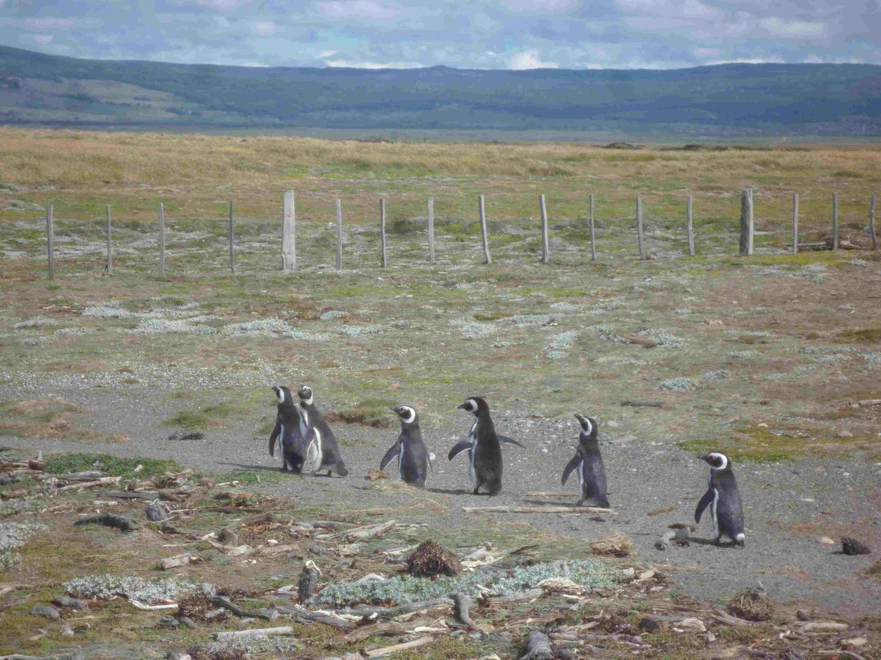 Donnerstagvormittag verbringen wir am Platz - ich schreib und ordne wieder mal die Fotos - Arno ist am Informationsaustausch. Für den Nachmittag haben wir einen Ausflug nach Seno Otway zu den Magellan Pinguinen geplant, obwohl es heute sehr kalt ist. Als wir um 14.30 Uhr wegfahren scheint die Sonne, es hat bereits 17 Grad aber eiskalten Wind. Der Weg zu den Pinguinen führt uns aus 22 km Asphalt und 40 km auf festem Schotter. Am Seno Otway nisten etwa 11.000 Tiere in einer weiten Wiesenlandschaft. Die Magellan Pinguine sind leicht zu erkennen, sie sind recht klein - max. 70 cm - wiegen etwa 4 kg und haben als besondere Charakteristika den schwarz weißen Kopf, sowie einen schwarzen Streifen, der am oberen Rand ihrer Brust verläuft. Die Tiere kommen Ende Oktober hierher um sich zu paaren und die Jungen aufzuziehen. Im März verlassen sie das Gebiet und ziehen sich in wärmere Gewässer zurück, um im Oktober - ohne dazwischen an Land zu gehen!! wieder zurück zu kehren. Der Ausflug hat sich gelohnt, obwohl die Brutzeit noch nicht beendet ist und viele Tiere in den Höhlen sind. Der Rundweg - per Pedes - dauert ca. 1 ½ Std. und ist sehr nett angelegt. Zurück in Punta Arenas fahren wir in die Zollfreizone um uns einen neuen Fotoapparat zu kaufen. Das Gerät welches wir uns leisten ist nun wasserfest (bis 10m Tiefe) und stoßsicher auf 2m und hat die Linse und das Zoom sicher abgedeckt, da unsere Lumix den vielen Staub und die Feuchtigkeit nicht verträgt und sich die Schließe vor der Linse nicht mehr richtig bewegt. So war das Christkind schon heute bei uns. Als wir zum Camping zurückkommen ist es bereits 21.30 Uhr und wir beschließen nicht mehr zu kochen. Wir schauen nach einem netten Lokal für das Abendessen. Morgen müssen wir früh raus, da wir bereits um 8.00 Uhr am Hafen bei der Fähre sein sollen.