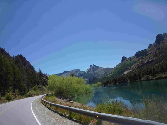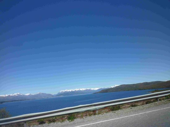 Montagmorgen habe ich keine Lust das warme Zimmer zu verlassen. Als mir Arno jedoch sagt, dass es bereits 13 Grad hat, bewege ich mich doch aus dem Bett, damit wir nach Kaffee und Croissant zur Weiterfahrt aufbrechen können. Heute ziehen wir doppelte "Schicht" an, und so ist es gar nicht mehr so schlimm mit der Kälte. Unser heutiger Weg führt uns an einigen Bergmassiven vorbei welche alle an den höchsten Spitzen (ca. 2000m) noch schneebedeckt sind. Die etwas niedrigeren haben letzte Nacht eine zarte "Zuckerdecke" erhalten. Die Landschaft ist so unsagbar vielseitige - teilweise eher flache grüne Hügel, dann hohe Berge, weiter durch schmale Täler. Einer verlässt uns jedoch in keinem dieser Gebiete - der WIND!! Gegen 16.00 Uhr erreichen wir Bariloche. Auf der Suche nach der Touristeninfo spricht uns eine Frau auf Deutsch an, ob wir ein Zimmer für die nächsten Tage suchen, so nach dem Motto - es kommt doch niemand auf die Idee bei dem Wetter auf dem Campingplatz zu übernachten. Wir besichtigen das Zimmer - welches sich als Appartement herausstellt - aber entschließen uns doch, auf den Campingplatz wo das Treffen stattfinden wird zu fahren. Bettina - so der Name der netten Argentinierin mit deutschen Wurzeln - sucht uns im Internet die genaue Adresse, ruft an ob schon offen ist, und los geht es wieder. Das Treffen findet ca. 15 km außerhalb der Stadt statt. Ein wunderschöner Platz an einem See, umringt von Bergen und entschuldigt - schweinekalt. Schnell haben wir alles (auch das Vorzelt) aufgebaut, den Lüfter auf Hochbetrieb geschaltet und so ist es bald kuschelig warm. Trotz meiner Bedenken ob der Kälte bin ich sehr froh, dass wir hierher gefahren sind - aufgrund der hohen Bäume ist es relativ windgeschützt und ein Stück Natur pur. Ich brauche wohl nicht zu berichten, dass wir unter 100% freien Stellplätzen aussuchen können.