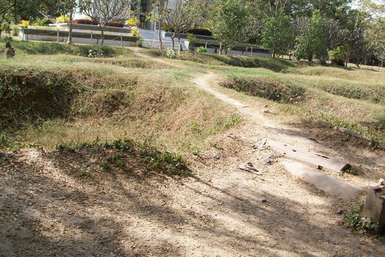 Jahre spaeter wurde hier die Gedenkstaette an die Opfer errichtet und die vergrabenen Skelette nach alter und Geschlecht aufgerestapelt