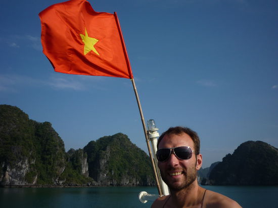 Ach so, das hätte ich fast vergesen. Im Supermarkt kostet ein Bier hier maximal 10.000 Dong, das ist aber auch schon ein Touri Preis, im Restaurant so 15.000-20.000 Dong und auf dem Schiff wollten sie dann 40.000 Dong haben. Nachdem wir die Preise gesehen haben haben sie uns gleich einen Zettel gezeigt auf dem stand das wir eine Strafe zahlen müssen, wenn wir was zu trinken mit aufs Boot nehmen und zwar 20.000 Dong für eine Dose Bier. Echt frech, aber wir hatten trozdem was zu trinken dabei und haben uns nicht erwischen lassen auf dem Zimmer.