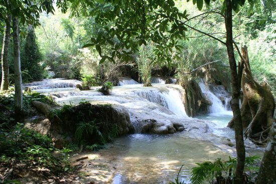 Kaum draussen schicken mich die zwei zuständigen Laoten auch noch zur Spring - also Quelle... Ich also runter den Berg und auf einen wie durch wunderhand vorhandenen kleinen See gestarrt der eine Ströhmung aber keinen Anfang hatte... also eine unterirdische Quelle... nett... aber immer noch unspektakulär. Also zurück auf null, sprich zum Wasserfall. Als Spende hab ich mein Eintrittsticket hinterlassen - nicht fair... aber gerecht. Wo kommen wir denn da hin...