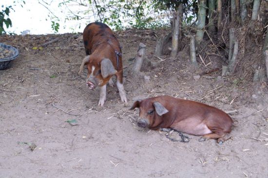 Ja... der Mekong... Lebensader von Laos... Haupttransportweg, Wasserversorgung, ein Grossteil der Grenze und zu dieser Jahreszeit eine braune Brühe. Dies, weil nach den Monsunregen im "Sommer" starke Strömungen herschen und das Gewässer sehr hoch ist. So wird alles was nur irgend möglich ist aufgewirbelt, zudem werden die Ufer und Inseln abgetragen. Also wird das Land von Jahr zu Jahr kleiner... Die Leute hier waschen sich übrigens in der braunen Brühe... ob das Erfolg bringt? Ich denke ja... auch das Duschwasser kommt daher und so richtig schmutzig bin ich nicht.