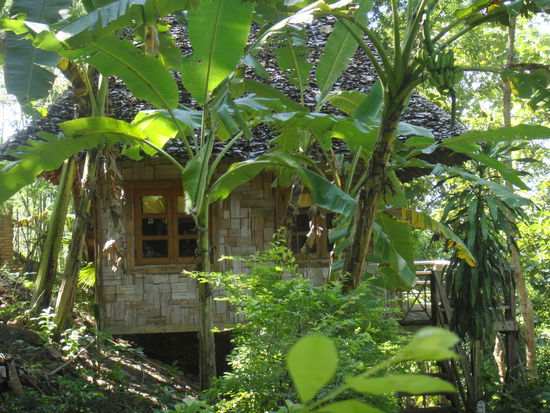 Am Nachmittag habe ich die Ruhe auf der Terrasse meines Bungalows genossen. Ich konnte genau den gleichen wie letztes Jahr beziehen. Dieser liegt schoen schattig mitten in einem kleinen Teakbaum-Wald, etwas ausserhalb der Stadt. Ueber dem Bett ein Moskitonetz. Dies ist eigentlich die angenehmste Art, sich vor Moskitos zu schuetzen, denn so kann ich nachts das Fenster und die