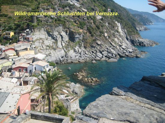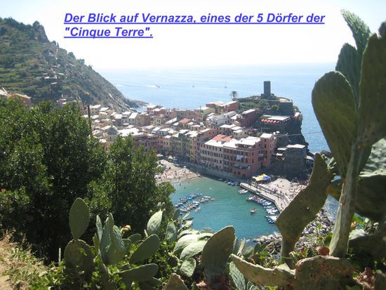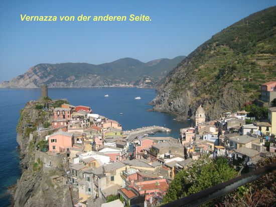 Nach einer Stunde der erste Blick auf Vernazza: Ein auf einer Halbinsel an