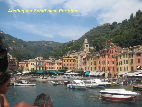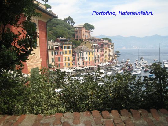 Die Einfahrt in die Bucht von Portofino zeigt uns ein Dorf, dessen Häuser