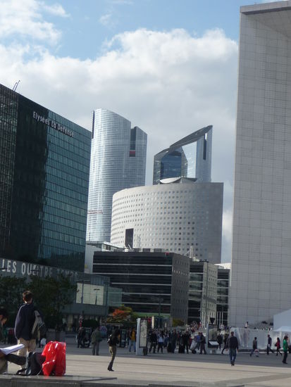 Mit der Metro Linie 1 fahre ich weiter bis bis zur westlichen Endhaltestation in La Defense einen modernen Hochhausviertel.Es gilt als Europas größte Bürostadt in der Hotels,Banken,Versicherungen und die Vertretungen von 14 der 20 größten Firmen aus Frankreich und 13 der 50 Weltweit größten Konzerne vertreten sind.