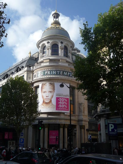 Nach dem ich aus der Oper komme stoße ich ersteinmal auf ein Demo von vielen Franzosen die gegen irgendetwas protestieren.Mein Ziel sind jedoch die vielen Kaufhäuser nebenan die einen gewissen Luxus austrahlen wie die Galeries Lafayette oder das Printemps.Die Galeries Lafayette sind sicher die bekannteste Kaufhauskette in Frankreich.Das Stammhaus wurde 1912 in Paris eröffnet mit seiner farbigen Glaskuppel und im Jugendstil.Gleich nebenan steht das Printemps aus dem Jahre 1870.In beiden Häusern gibt es einen sehr aufmerksamen Service in vielen Sprachen u.a. auch DEUTSCH.Wir haben Samstag womit es in den Einkaufstraßen sehr voll ist und ich lieber zusehe das ich schnell vorbei komme und mich keinen unnötigen Streß aussetze zumal ich von Hause aus nicht der geborene Shopping Mensch bin .Außerdem bin ich heute ja auf Museumstour !!