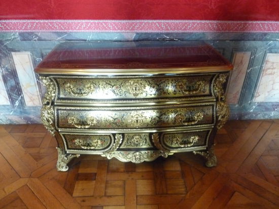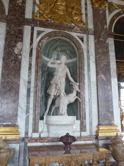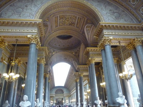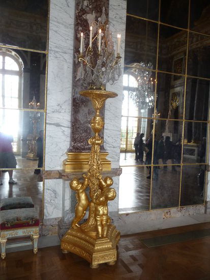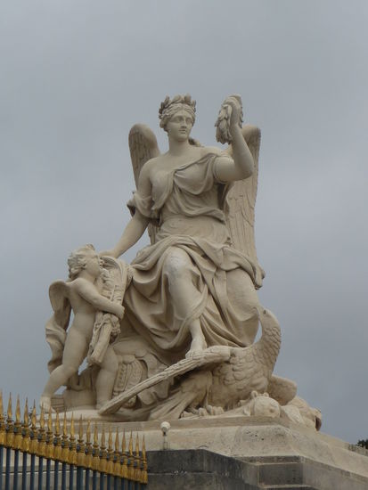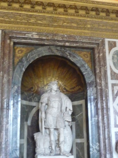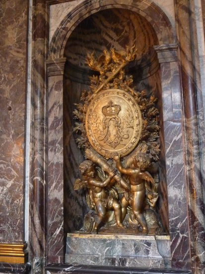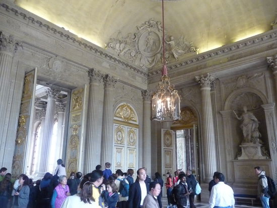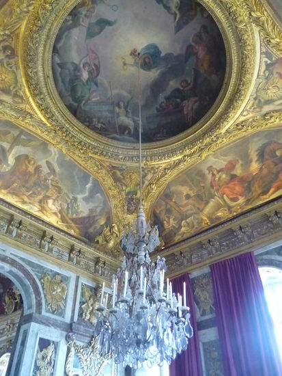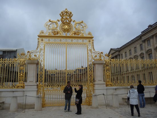 Nach dem ich also "glücklicher " Besitzer eines Tikets bin habe ich mich durch die Sicherheitskontrollen zum Schloßeingang vorgekämpft und die Show kann beginnen !!Versailles ist nicht nur wegen seiner aufwendigen Architektur sondern auch wegen der vielen geschichtsträchtigen Ereignisse Weltberühmt.Als Jagschloß für König Ludwig XIII. erbaut wurde es unter König Ludwig XIV. 1661 ausgebaut der sich mit dem barocken Palast und seinen prunkvollen Gärten ein Denkmal schuf.Unter dem Wirken des "Sonnenkönigs" war Frankreich zum kulturellen,wirschaftlichen und politischen Zentrum Europas geworden.Bis zum Anfang der Revolution war Versailles durchgängig von ein Hofstaat mit mehreren tausend Personen bewohnt und war seiner Zeit kultureller und politischer Mittelpunkt Frankreichs.Es ist einnes der größten Schloßanlagen Europas und war über Jahrhunderte das Vorbild vieler weiterer Schlößer auf dem gesamten Kontinent.Nach dem I.Weltkrieg wurde hier der "Versailler Vertag" verhandelt der Deutschland die Alleinschuld am Krieg anlastete.Nach dem II.Weltkrieg wurde er ein Ort der Deutsch - Französischen Aussöhnung.Mit über 3 Millionen Besuchern im Jahr ist es das meistbesuchte Schloß in Frankreich und gehört seit 1979 zum Unesco Wetkulturerbe.