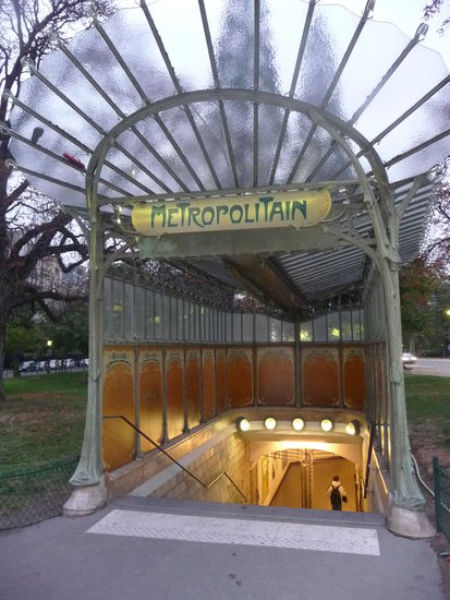 Die Metro wurde 1900 zur Weltaustellung eröffnet und hat heute eine Länge von ca. 214 Km mit 14 Linien womit sie zu den größten und ältesten der Welt gehört.Der Abstand zwischen den Stationen beträgt in der Regel nicht mehr als 500 m womit die Netzdichte in der Stadt relativ hoch ist.Während Leslie Green in London und Alfred Grenander in Berlin maßgeblich die Architekten der dortigen U Bahn Netze waren ist es in Paris Hector Guimard gewesen.Viele seiner Metroeingänge im Stil der Art Nouveau sind berühmt und ein Wahrzeichen von Paris.Als erste U Bahn der Welt wurden in Paris auch Gummibereifte Züge eingesetzt wie auf den Metro Linien 1,4,6,11 und 14.Wie schon beschrieben weißt die Linie 14 eine Besonderheit auf da sie im geschloßenen System errichtet wurde und heute die modernste Linie in Paris ist.