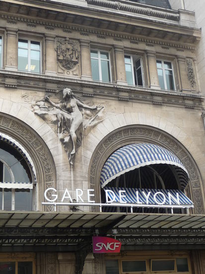 Etwa 1 Km weiter nördlich gelegen vom Bahnhof Austerlitz auf der anderen Seine Seite steht der Bahnhof Gare de Lyon.Er wurde 1895 bis 1902 erbaut aus Anlass der Weltausstellung 1900.Auf eine besondere Ausstattung und Architektur wurde viel Wert gelegt da der Bahnhof als erster Eindruck und Eingangstor in die Stadt Paris galt.Der 65 m hohe Bahnhofsturm hat durchaus etwas Ähnlichkeit mit Big Ben in London.Sehenswert ist auch das Restaurant " Le Train Bleu " mit seinen Wandmalerein und den reich verzierten goldenen Saal.Der Lyoner Bahnhof gehört zu den bedeutensten in Europa und mit ca. 270000 Besuchern am Tag gehört er zu den größten in Paris.Er ist besoders für die TGV Verbindungen nach Süden wichtig wie Lyon,Marseille,Nizza und nach Turin und Mailland in Italien.