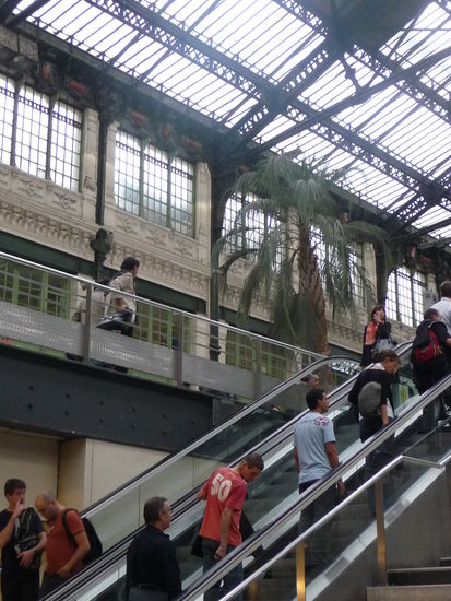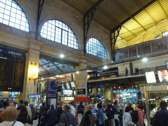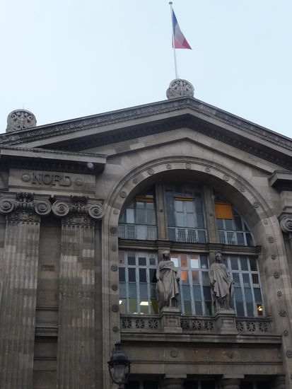 Wieder etwas weiter in Nordöstlicher Richtung steht der Pariser Nordbahnhof Gare du Nord.Er wurde 1846 als belgischer Bahnhof eröffnet war aber schon bald zu klein also wurde 1864 ein neuer und westentlich größerer Bahnhof dem Verkehr übergeben.Mit ca. 500000 Reisenden am Tag ist er der größte und Verkehrsreichste Bahnhof in Paris.Von hier fahren vor allem die Züge Richtung Norden nach Köln,Brüssel,Amsterdam und durch den Eurotunnel nach London.