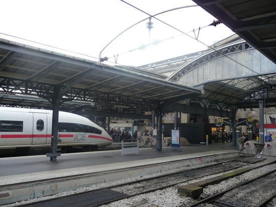 Wer aufgepaßt hat wird merken das noch ein wichtiger Pariser Bahnhof fehlt.Es ist der Gare d Est ( Ostbahnhof ) von den ich meine Heimfahrt über Frankfurt/Main nach Berlin Ostbahnhof antreten werde.Er gehört für mich neben dem Gare de Lyon zu den schönsten in Paris.Erbaut wurde er 1849 zunächst für Verbindungen ins Elsass u.a. nach Strasbourg.Bis 1931 wurde er noch mehrmals umgebaut.Im Oktober 1883 startete im Gare d Est zum ersten mal der legendäre Orient Express zu seiner Fahrt nach Konstantinopel heute Istanbul.Heute verkehren hier die TGV und ICE Züge Richtung Osten nach Elsass Lothringen,Luxemburg,Süddeutschland,Schweiz und Österreich.Der Bahnhof wird von ca. 95000 Reisenden am Tag besucht.