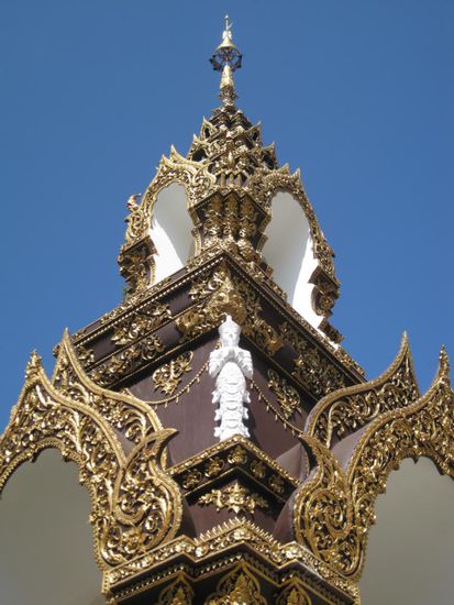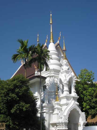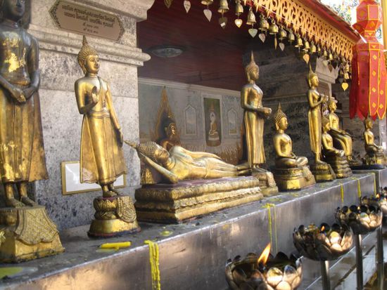 Dann hoch in den Norden von Chiang Mai, Richtung Doi Suthep, dem Hausberg von Chiang Mai, wo wir bereits vorgestern mit dem Stadttaxi hingefahren sind. Dort befindet sich eines der bekanntesten Kloester Thailands. Der goldene Chedi aus dem 16.Jahrhundert enthaelt eine Relique von Buddha.