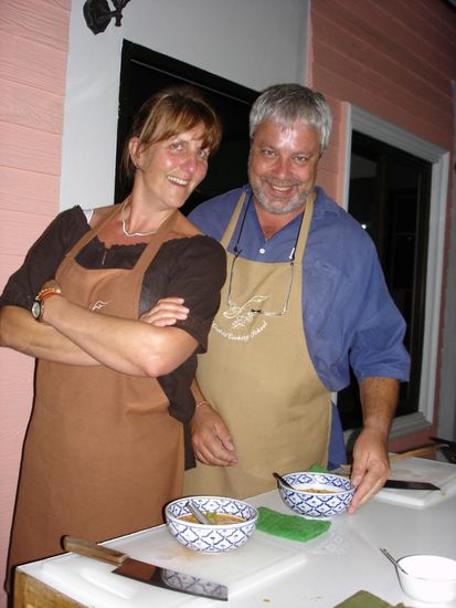 Jedem Chiang Mai Reisendem zu empfehlen. Kleine Gruppe, super nette Lehrmeisterin. genannt "A". Genauso einfach und kurz wie die Zubereitung der Speisen.... Ein Hauptsatz lautete: YOU ONLY COOK FOR ONE MINUTE - Bitte nur eine Minute lang kochen.... Wir erfuhren, dass eine Thaifamilie fuer die Zubereitung eines 3-Gaenge Menues nicht laenger wie 15 Minuten benoetigt.... Wohl dem, der so praktische Dinge und Einrichtungen hat wie: Chickenshops, da werden die Huehnchenteile und Filets genau so vorgeschnitten, wie man sie in Thailand fuer landestypische Gerichte benoetigt. Ist vielleicht ne Geschaeftsidee fuer Deutschland... "Was sind sie von Beruf ? Chickenshop-Owner ! Und was machen Sie so: Ich schneide Huehnchen in mundgerechte Stueckchen....