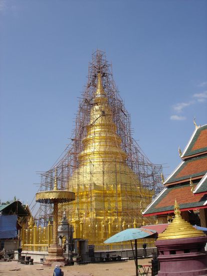 haben die Umgebung von Chiang Mai unsicher gemacht, erst in den Sueden nach Lamphun, einer der aeltesten Staedt Thailands. Wurde 660 als Hauptstadt des Haripunchai Koenigreichs gegruendet.... Hat einen sehr sehenswerten alten Wat und Chedi, leider momentan sehr im Umbau begriffen.