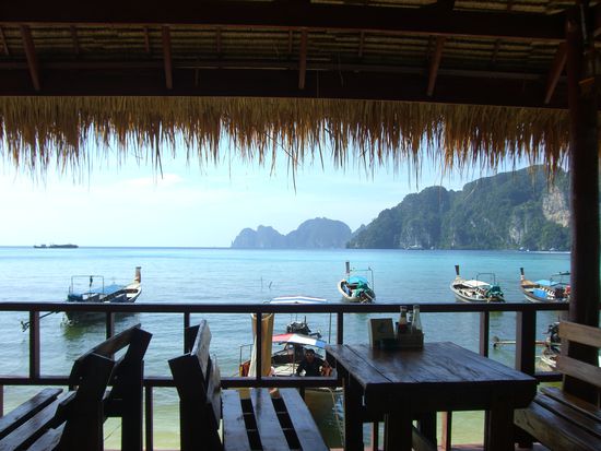 Als wir nach eineinhalb Stunden Fahrt mit der Faehre auf Koh Phi Phi angekommen sind, waren wir etwas betruebt. Leider war das Resort in dem wir gerne eingecheckt haetten, komplett ausgebucht!