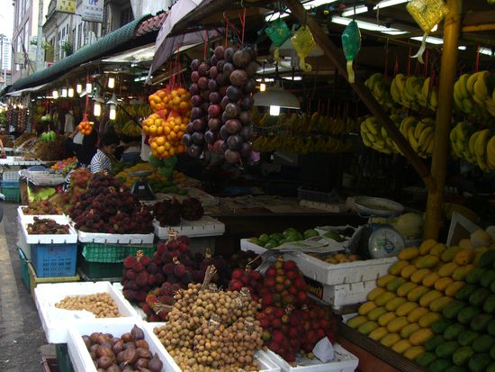 Der Markt ist auf jeden Fall einen Besuch wert. Schlendert man durch die engen Gassen sieht und riecht man allerlei Exotisches. Wir haben verschiedene Fruechte probiert und man wird es kaum glauben, es war auch etwas dabei, das wir noch nie gesehen haben.