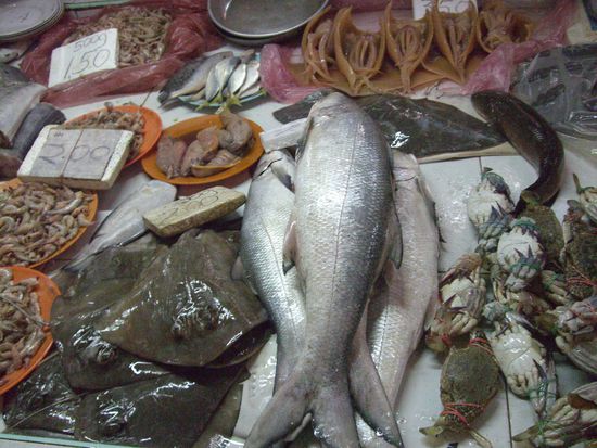 Hier kaufen vor allem Einheimische Obst, Gemuese, Fleisch und Fisch. Sogar Stachelrochen und lebendige Schlangen werden zum Verkauf angeboten!