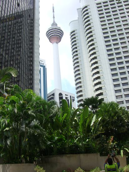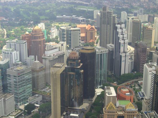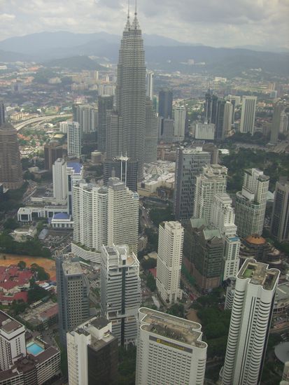 Bei strahlendem Sonnenschein hatten wir um die Mittagszeit einen fantastischen Blick ueber Kuala Lumpur. Der Menara-Fernsehturm ist ca. 420m hoch und befindet sich mitten in der City. Fuer einen Wucherpreis von umgerechnet 8 Euro wird man mit dem Aufzug in den 82. Stock befoerdet. Dafuer gibt's oben eine kostenlose Audio-Fuehrung in deutscher Sprache.