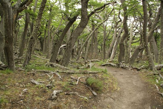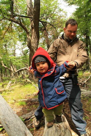 Friederike, Henning und Elisa verlassen uns nach mehreren Wochen gemeinsamer Reise in Richtung Buenos Aires und Sommer. Auf uns wartet statt dessen eine weitere Ganztageswanderung. Mit inzwischen fieberndem Mann und widrigsten Witterungsbedingungen muss die einfach schief gehen. Am Morgen starten wir noch sehr euphorisch. Von einer malerisch gelegenen Hosteria geht es durch Maerchenwald mit -ja wieder- einem Ausblick auf einen Gletscher.