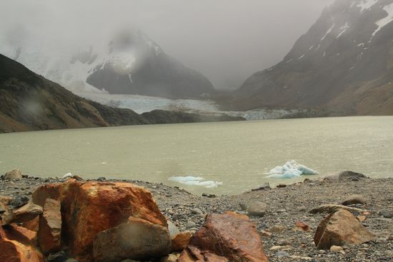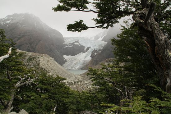 Eigentlich sind wir hier her gefahren, um die Bergmassive des Fitz Roy (auf Mapuche: El Chaltèn) und des Cerro Torre (Turm) zu bewundern. Wir haben kein Glueck, wolkenverhangen praesentiert sich die Umgebung waehrend unserer gesamten Zeit hier.