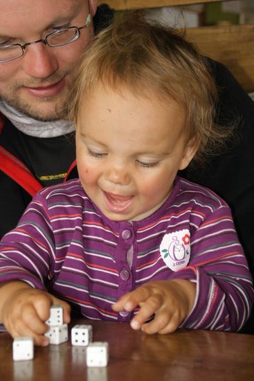 Ein letztes Mal kehren wir gemeinsam in die gemuetliche Waffleria ein, die uns waehrend der Zeit hier ans Herz gewachsen ist. Bei heisser Schokolade nehmen wir von dieser stuermischen Gegend mit den Bergen, die wir leider nicht sehen durften, Abschied. Als Trost baute uns Juliane ihren eigenen Cerro Torre -mit Wuerfeln- und freute sich diebisch.