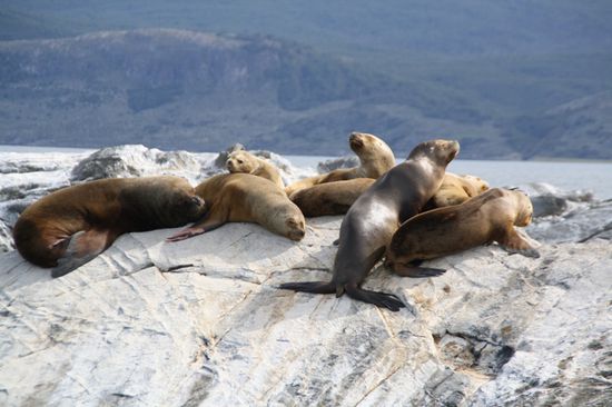 Und weil es so schoen war, geht es einen Tag spaeter noch mal in den Nationalpark. NP`s haben den Vorteil, dass man fuer's Wandern Geld bezahlen darf. Und als Auslaender auch ganz ordentlich. Na, was soll`s, schoen ist die Gegend allemal. Obwohl es frueh regnet, haben wir auf dem Weg doch noch schoenes Wetter bekommen und koennen von der Pampa Alta einen Rundblick ueber den Kanal und die umliegenden Berge geniessen.