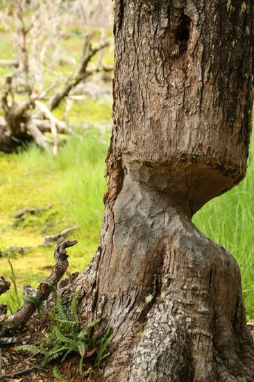Vergeblich warten wir wahrend einer der Wanderungen an einem Biberdamm darauf, so ein possierliches Tierchen zu Gesicht zu bekommen. Spaeter lesen wir im Reisefuehrer, dass die Burgherren schon laengst ausgezogen sind. Wir waren aber nicht die Einzigen, die mucksmaeuschenstill - sofern dass mit unserer Plaudertasche ueberhaupt geht - verharrten. Beruhigend.