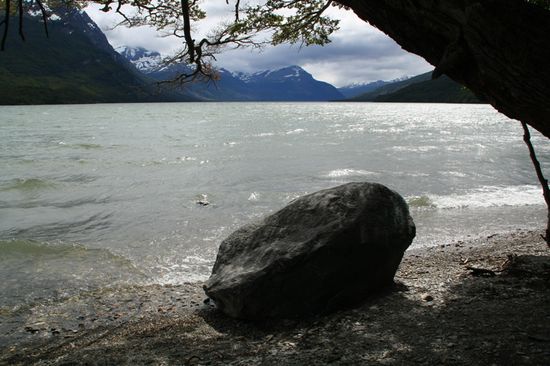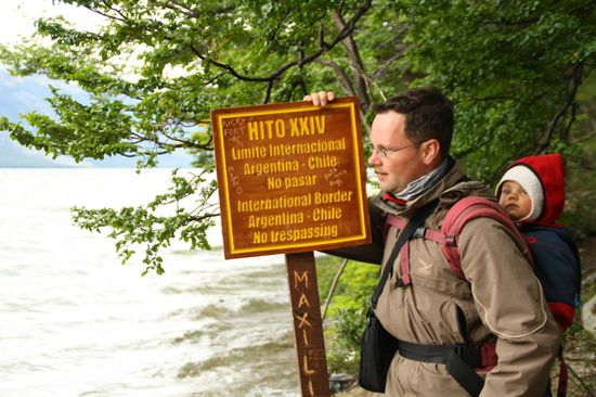Eine andere Wanderung fuehrt an einem der Seen entlang an die Grenze zu Chile. Mit Chile kommen wir immer wieder in Beruehrung.