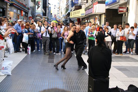 Vor dem Shopping Tempel fand eine Tangoshow fuer Touristen statt. Nicht nach unserem Geschmack (es ist schwer, aber ich kann das nur bestaetigen - Stephan)! Die Dame war halbnackt und hatte zu viel Farbe im Gesicht. Der Herr dazu war knochenalt.
