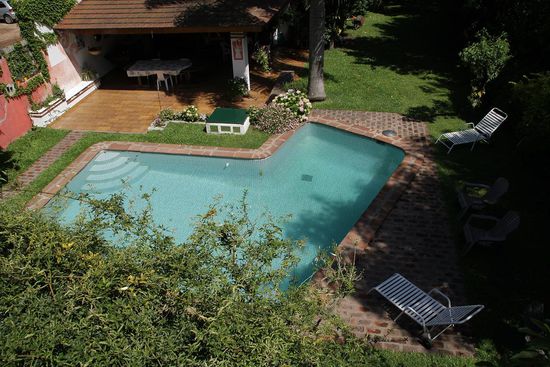 Nicht weit vom Bahnhof findet sich unser Quartier, ein B&B, gefuehrt von einer Kuenstlerin. Wow!!! Eine grosse Villa, ueberall steht Nippes. Lieb dekorierte Waende und Moebel zieren jeden Raum. Von unserem Balkon haben wir Blick auf den Garten mit Pool. Es ist traumhaft, wie im Urlaub....