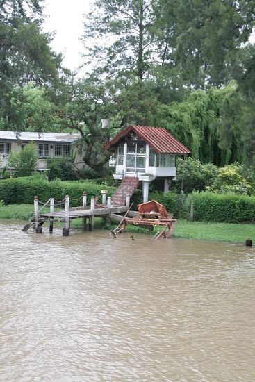 Mit einer Vorortbahn, deren Fahrgeraeusche an Bersten und Zerbrechen erinnern, ging es eine knappe Stunde nach Tigre. Der beschauliche Ort liegt im Delta verschiedener Fluesse, die in den Rio de la Plata muenden. Auf den Inseln im Delta haben wohlhabende Argentinos ihre Wohn- oder Wochenendesitze. Es ist eher ausgestorben, bis am Wochenende die Porteños zu Picknick und Spaziergaengen einfallen - aber da sind wir ja schon wieder abgereist.