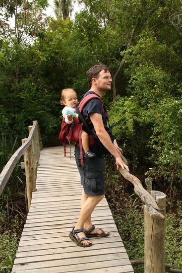 Sie entdeckt taeglich neue Worte. Was wir gelernt haben, ist, ihr ihren Mittagsschlaf zu goennen. Den macht sie in der jeweiligen Unterkunft oder auch an einem schattigen Plaetzchen in ihrer kleinen "Schlafwanne". Hat sie den nicht, raecht sie sich am Abend....Die ersten Tage in B.A. waren sicher sehr anstrengend fuer sie, aber jetzt ist es insgesamt weniger stressig und wir haben alle auch unseren Rhythmus gefunden. Fuer uns bedeutet dieser Rhythmus, alles langsamer anzugehen, was natuerlich ganz andere Sichtweisen eroeffnet. Tigre und Colonia machen die meisten von B.A. als Tagesausflug. Und da verpasst man so viel! Weil diese Orte erst dann Ihren Charme entfalten, wenn die Tagesausfluegler fort sind.